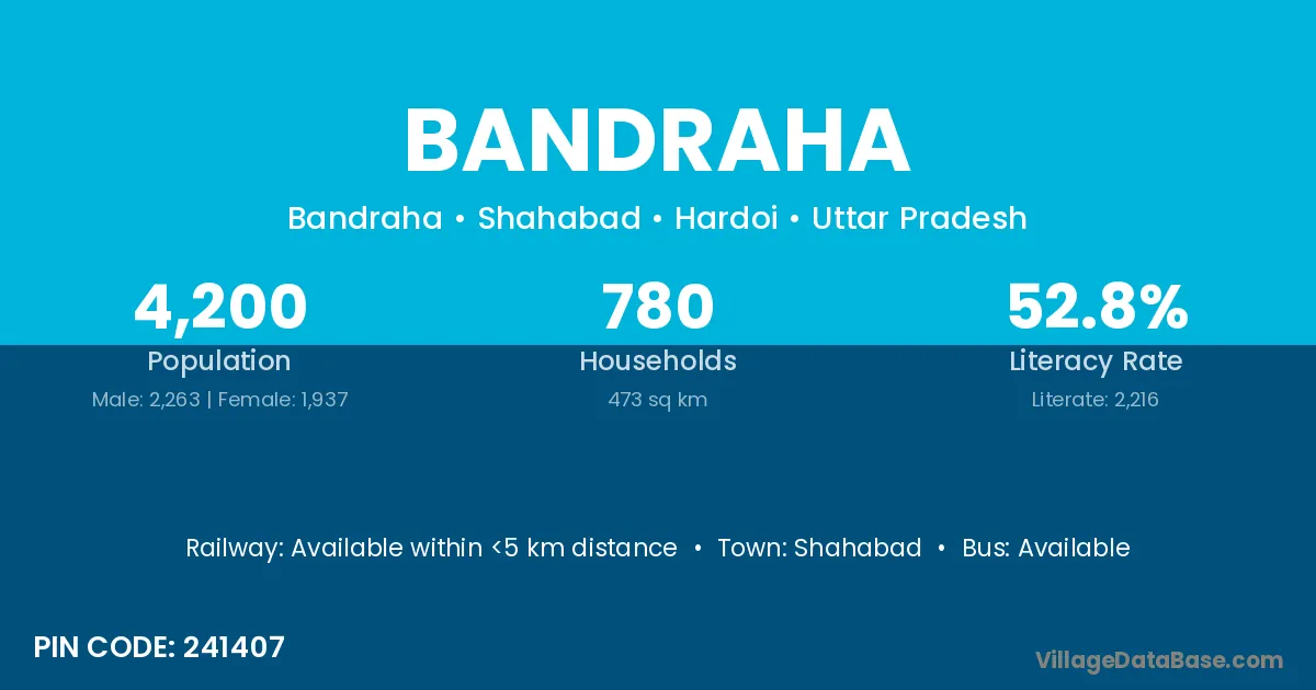 Unchehara (6 km) is the nearest town to Bandraha village for major economic activities and is located approximately 6 km away.