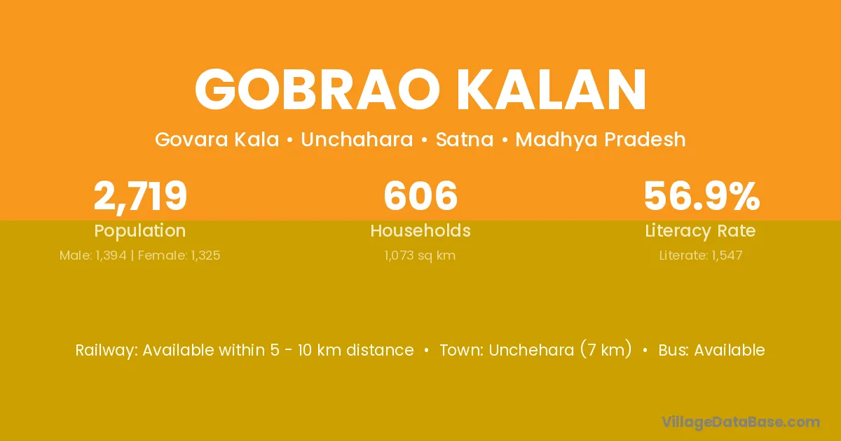 Unchehara (7 km) is the nearest town to Gobrao Kalan village for major economic activities and is located approximately 7 km away.
