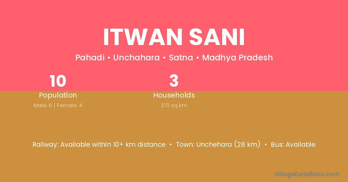 Unchehara (28 km) is the nearest town to Itwan Sani village for major economic activities and is located approximately 28 km away.
