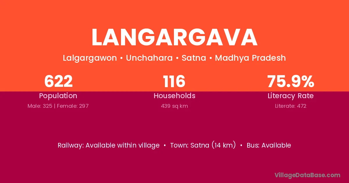 Satna (14 km) is the nearest town to Langargava village for major economic activities and is located approximately 14 km away.