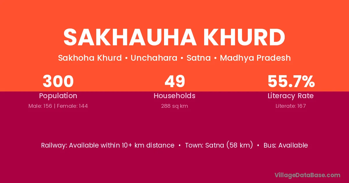 Satna (58 km) is the nearest town to Sakhauha Khurd village for major economic activities and is located approximately 58 km away.