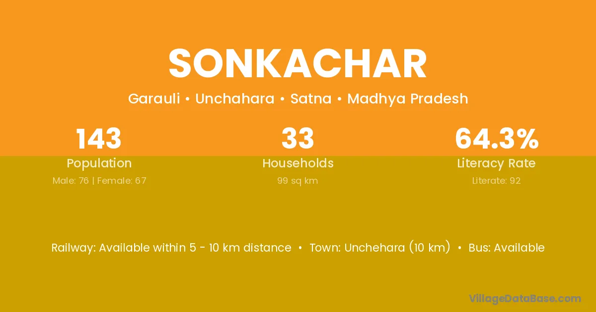 Unchehara (10 km) is the nearest town to Sonkachar village for major economic activities and is located approximately 10 km away.