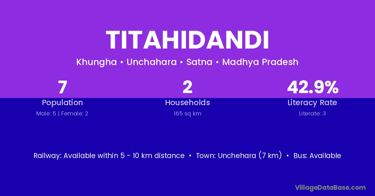 Unchehara (7 km) is the nearest town to Titahidandi village for major economic activities and is located approximately 7 km away.