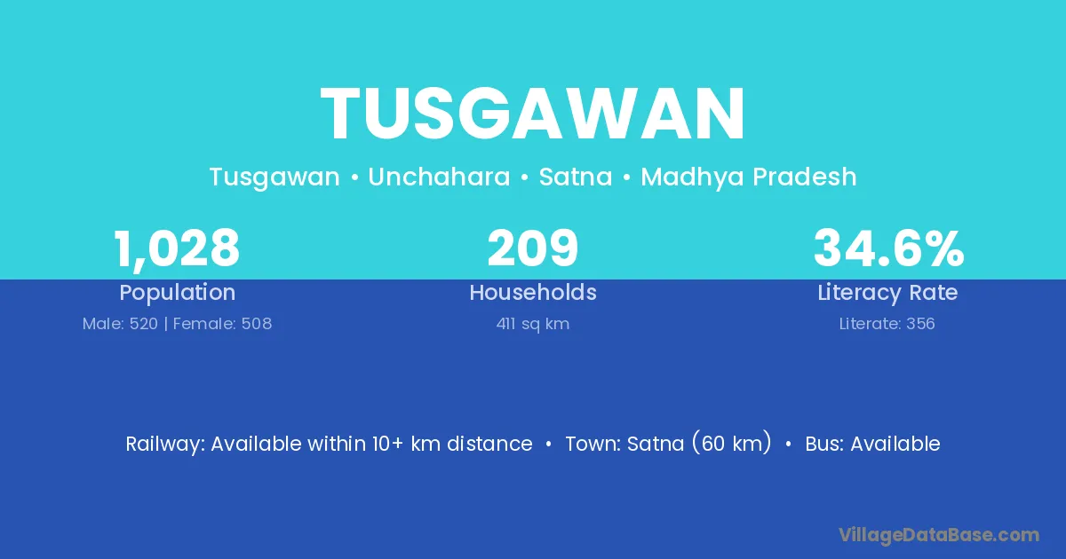 Satna (60 km) is the nearest town to Tusgawan village for major economic activities and is located approximately 60 km away.