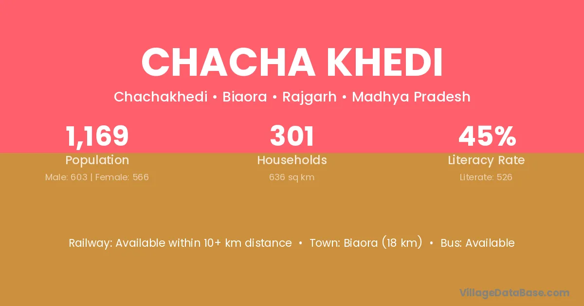 Ashta (15 km) is the nearest town to Chacha Khedi village for major economic activities and is located approximately 15 km away.