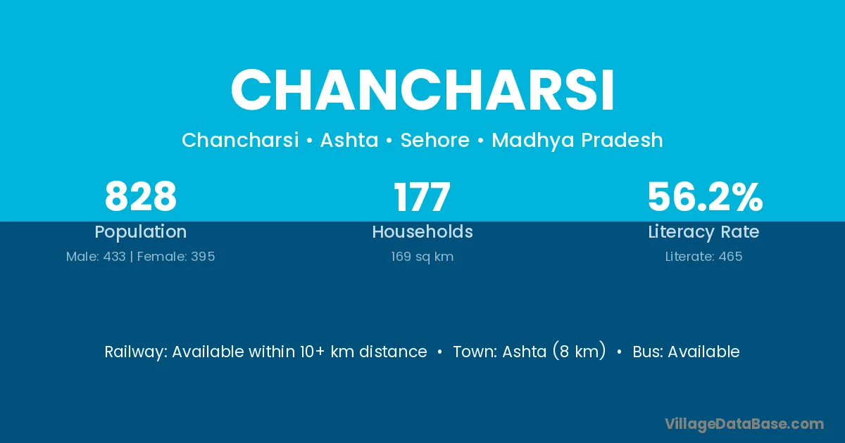 Ashta (8 km) is the nearest town to Chancharsi village for major economic activities and is located approximately 8 km away.