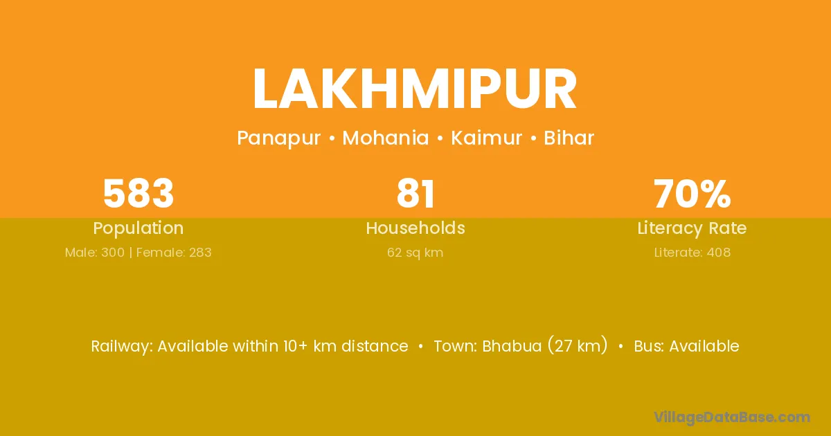 Ashta (15 km) is the nearest town to Lakhmipur village for major economic activities and is located approximately 15 km away.