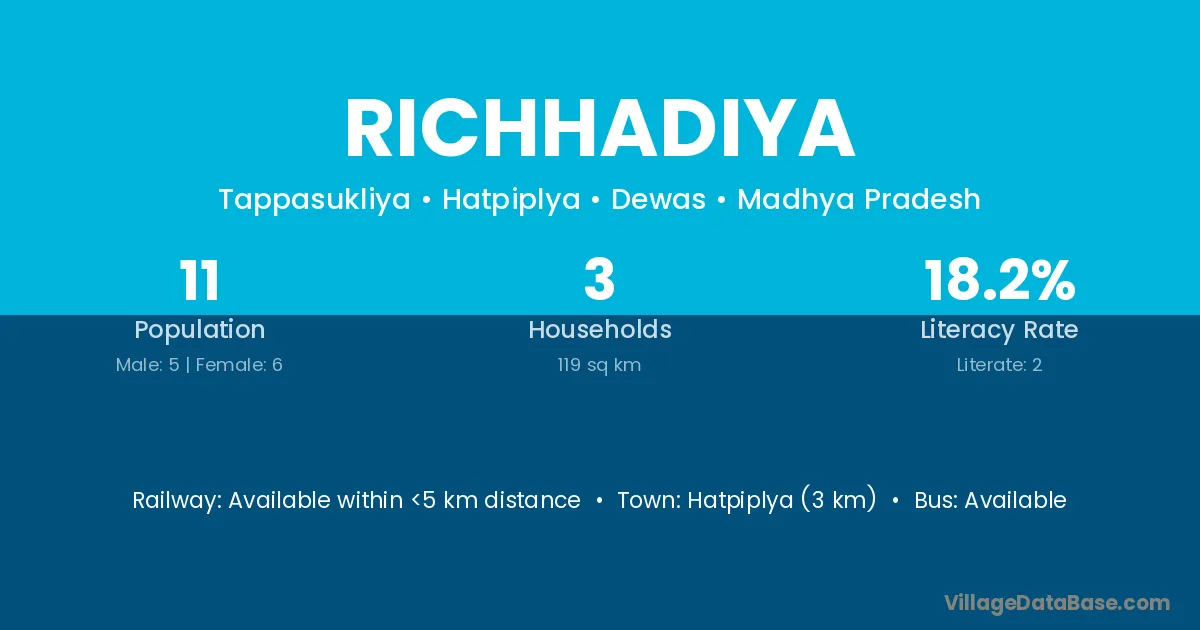 Richhadiya village has a total population of 919 people, of which 471 are males and 448 are females.