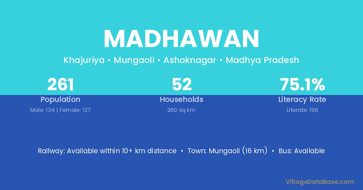 Budni (25 km) is the nearest town to Madhawan village for major economic activities and is located approximately 25 km away.
