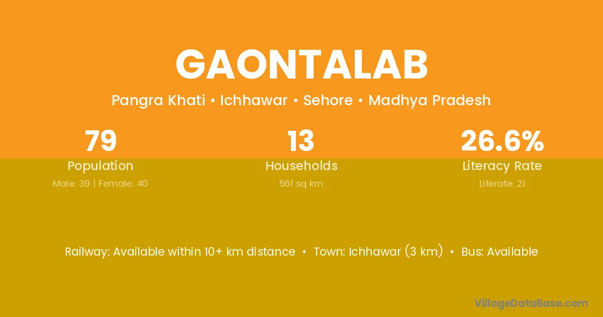 Ichhawar (3 km) is the nearest town to Gaontalab village for major economic activities and is located approximately 3 km away.