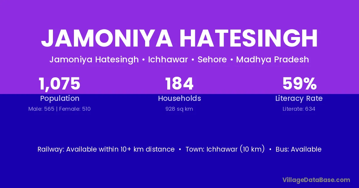 Jamoniya Hatesingh village is located in the Ichhawar Tehsil of the Sehore district in Madhya Pradesh .