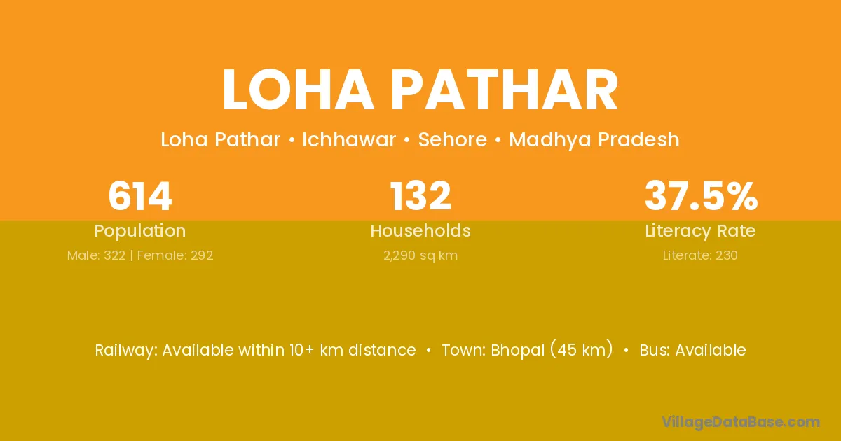 Bhopal (45 km) is the nearest town to Loha Pathar village for major economic activities and is located approximately 45 km away.