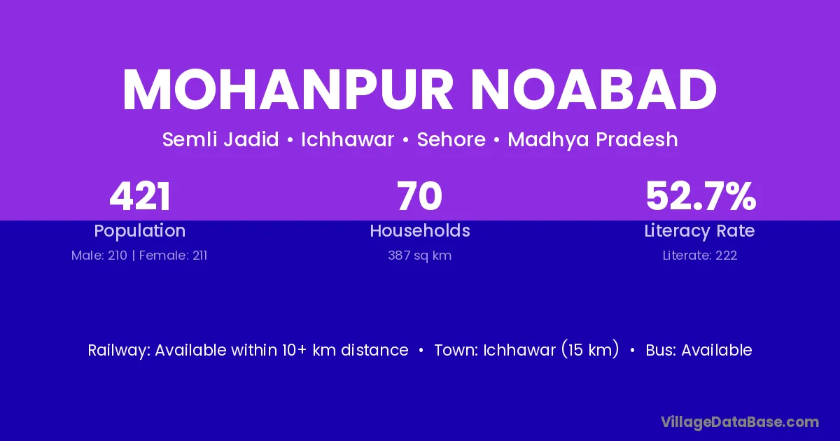 Mohanpur Noabad village has a total population of 421 people, of which 210 are males and 211 are females.