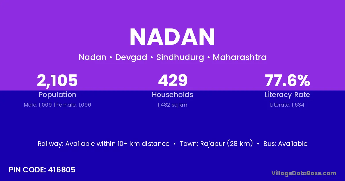 Nadan village has a total population of 1,109 people, of which 558 are males and 551 are females.