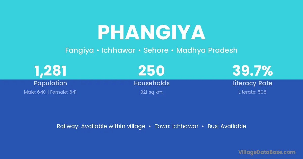 Phangiya village has a total population of 1,281 people, of which 640 are males and 641 are females.
