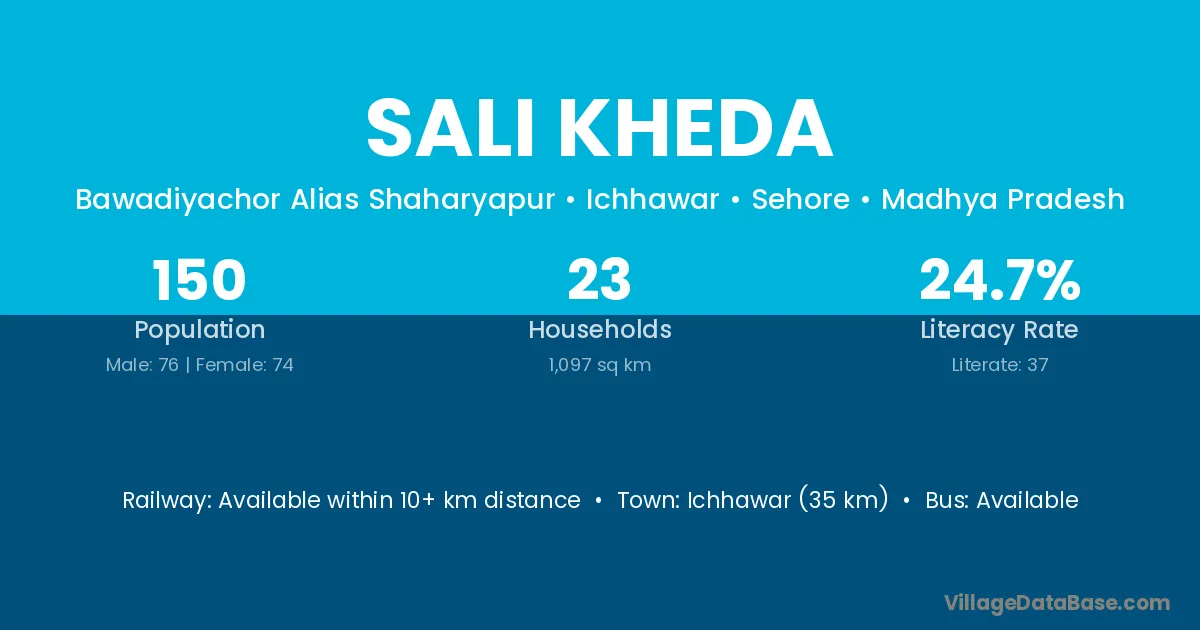 Ichhawar (35 km) is the nearest town to Sali Kheda village for major economic activities and is located approximately 35 km away.