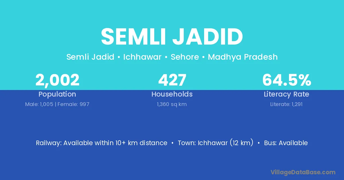 Ichhawar (12 km) is the nearest town to Semli Jadid village for major economic activities and is located approximately 12 km away.