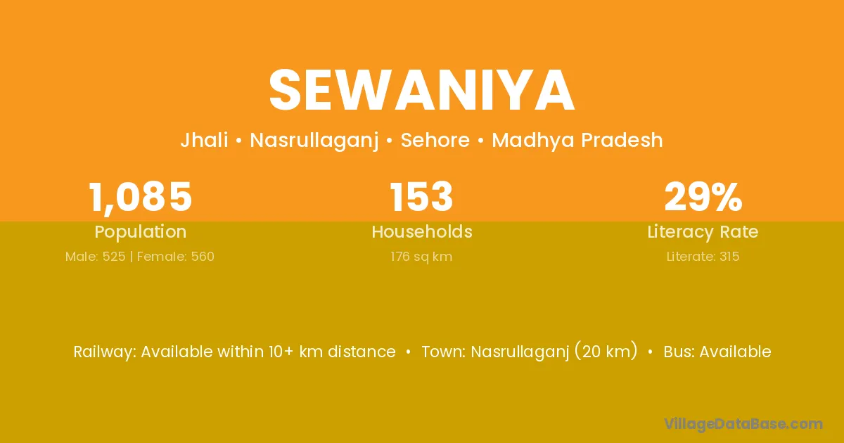 Ichhawar (8 km) is the nearest town to Sewaniya village for major economic activities and is located approximately 8 km away.