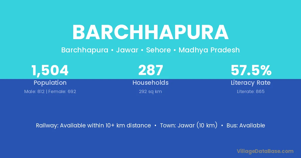 Jawar (10 km) is the nearest town to Barchhapura village for major economic activities and is located approximately 10 km away.