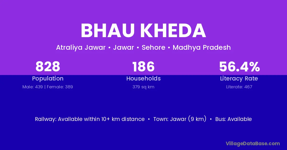 Jawar (9 km) is the nearest town to Bhau Kheda village for major economic activities and is located approximately 9 km away.