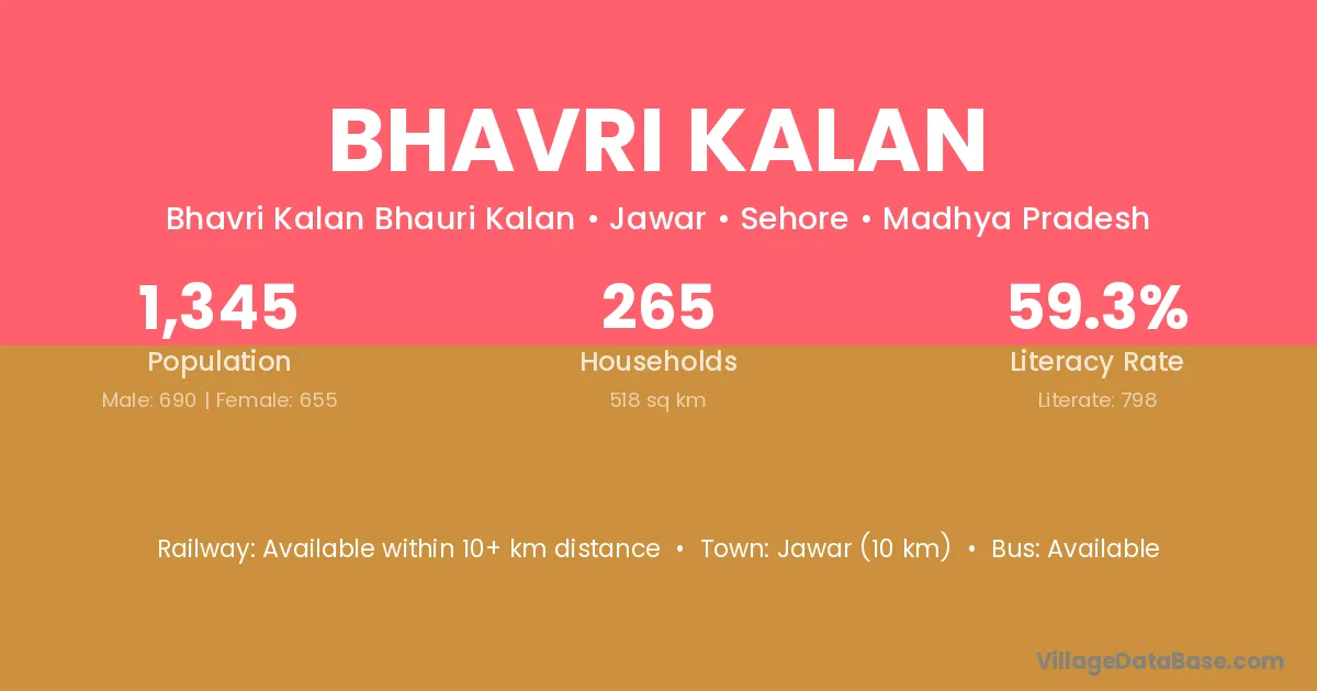 Bhavri Kalan village has a total population of 1,345 people, of which 690 are males and 655 are females.