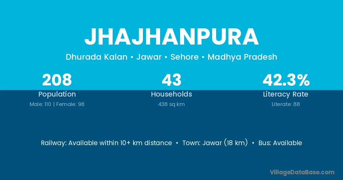 Jhajhanpura village has a total population of 208 people, of which 110 are males and 98 are females.