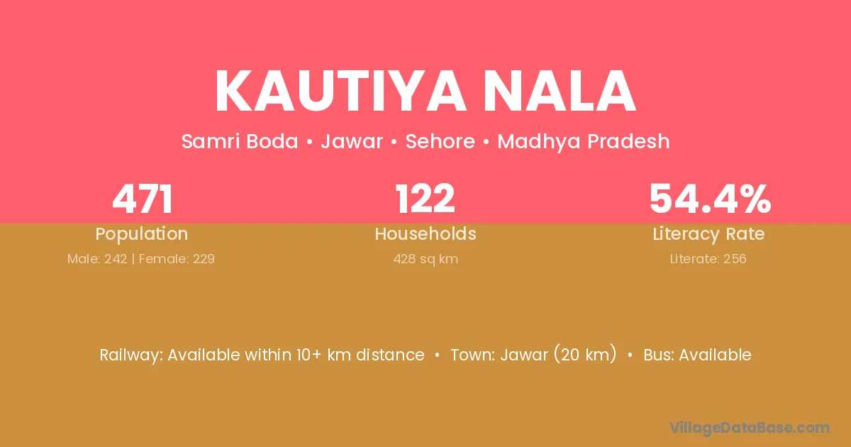 Jawar (20 km) is the nearest town to Kautiya Nala village for major economic activities and is located approximately 20 km away.