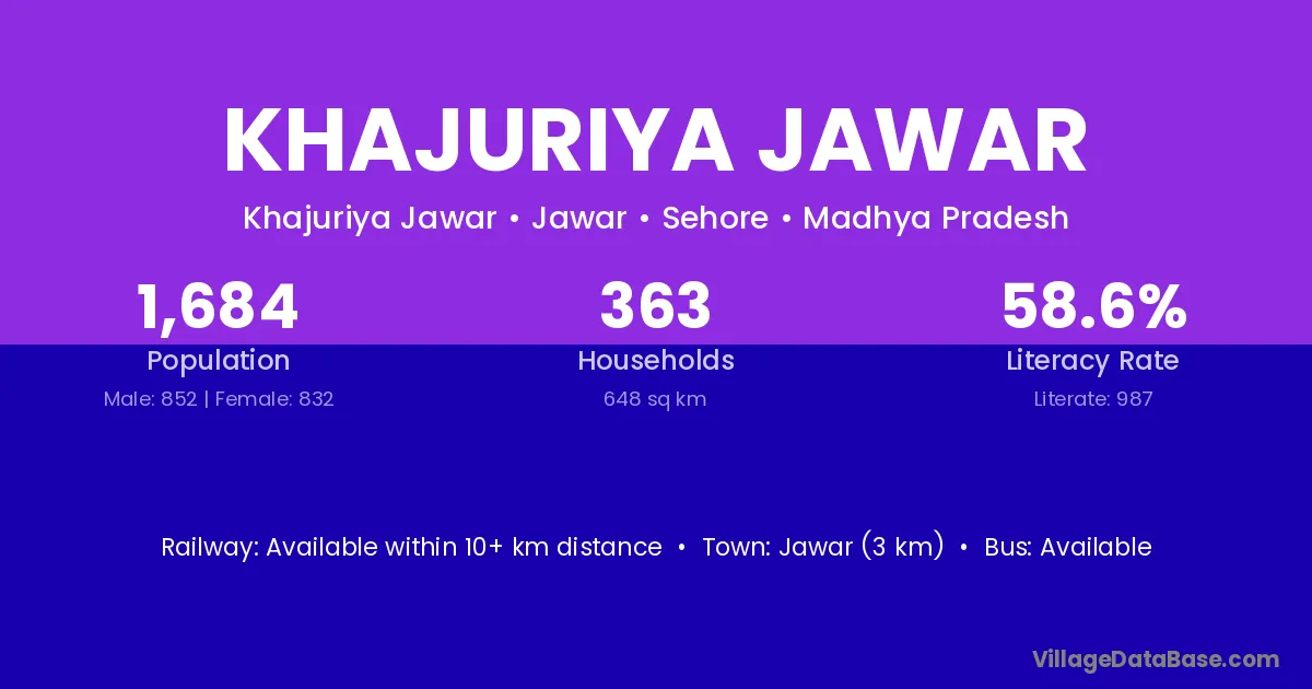 Jawar (3 km) is the nearest town to Khajuriya Jawar village for major economic activities and is located approximately 3 km away.