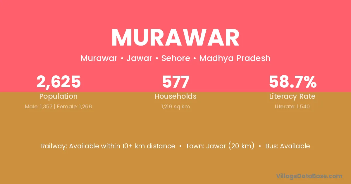 Jawar (20 km) is the nearest town to Murawar village for major economic activities and is located approximately 20 km away.