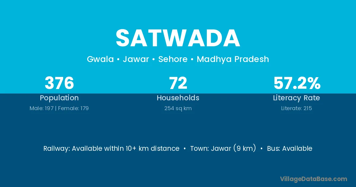 Satwada village has a total population of 376 people, of which 197 are males and 179 are females.