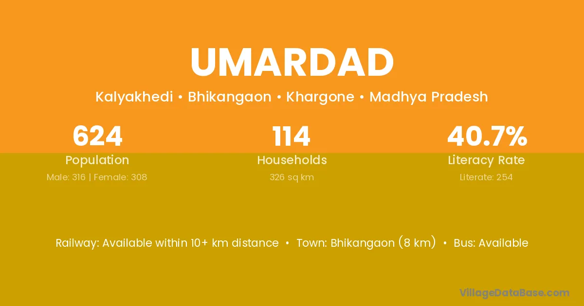 Ashta (33 km) is the nearest town to Umardad village for major economic activities and is located approximately 33 km away.
