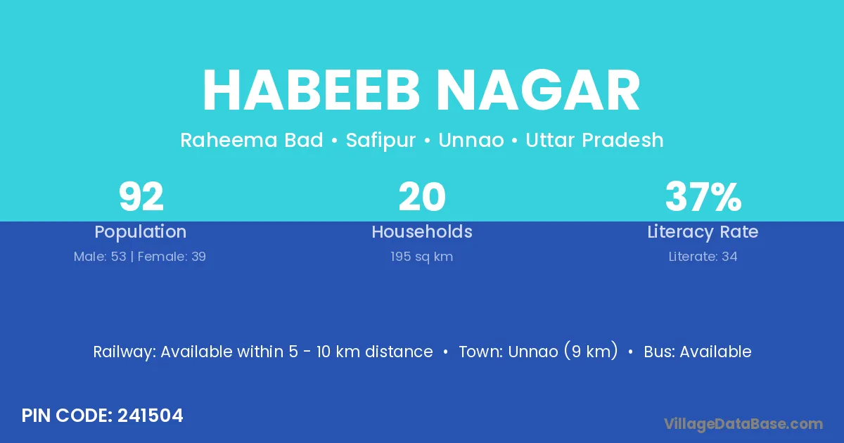Nasrullaganj (22 km) is the nearest town to Habeeb Nagar village for major economic activities and is located approximately 22 km away.
