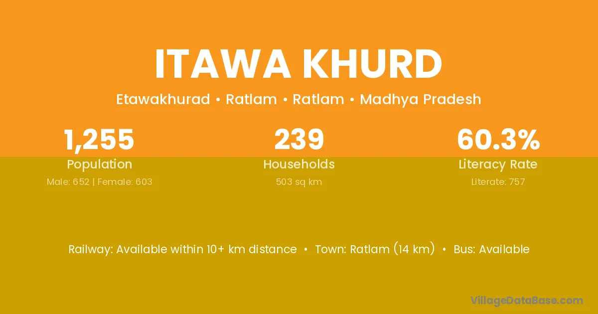 Nasrullaganj (40 km) is the nearest town to Itawa Khurd village for major economic activities and is located approximately 40 km away.