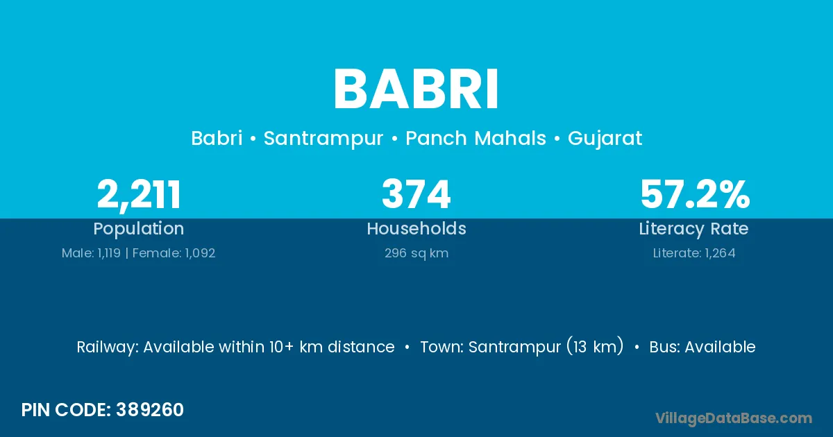 The literacy rate of Babri village is 66.07%. Male literacy stands at 74.83% and female literacy at 56.99%.