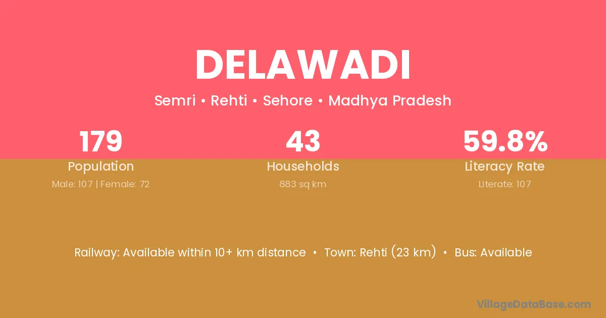 Rehti (23 km) is the nearest town to Delawadi village for major economic activities and is located approximately 23 km away.