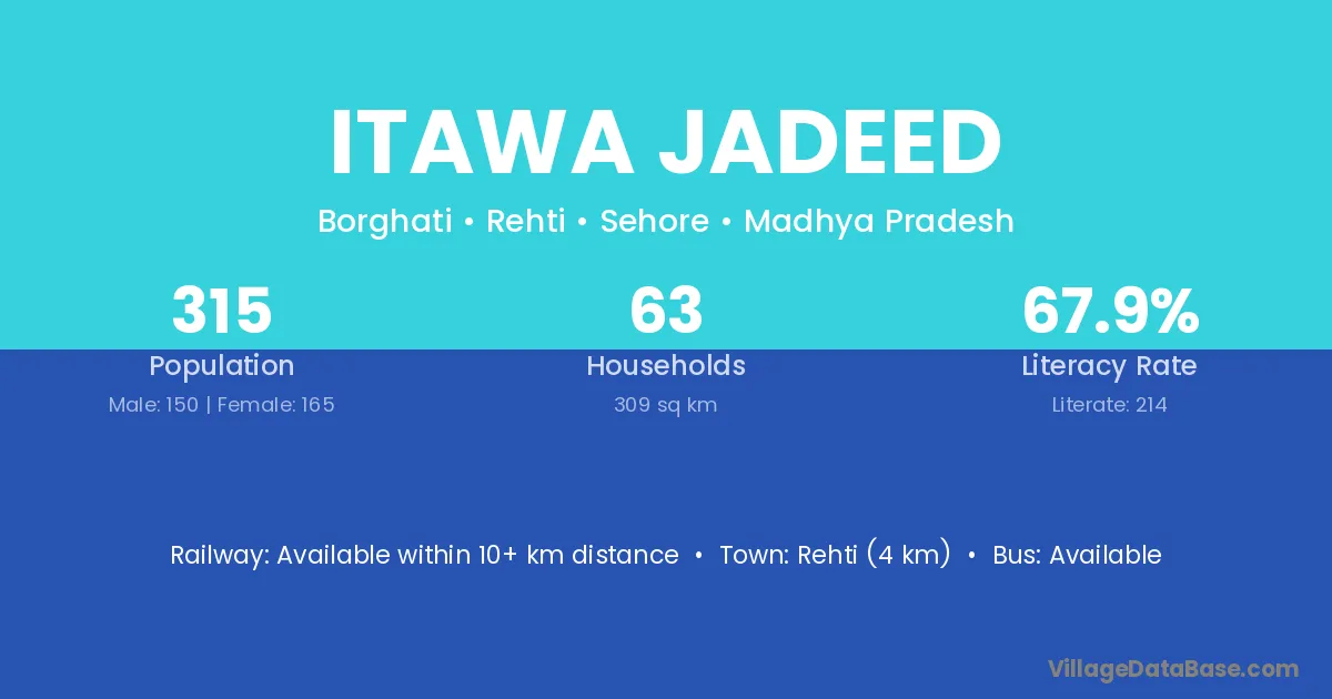 Rehti (4 km) is the nearest town to Itawa Jadeed village for major economic activities and is located approximately 4 km away.