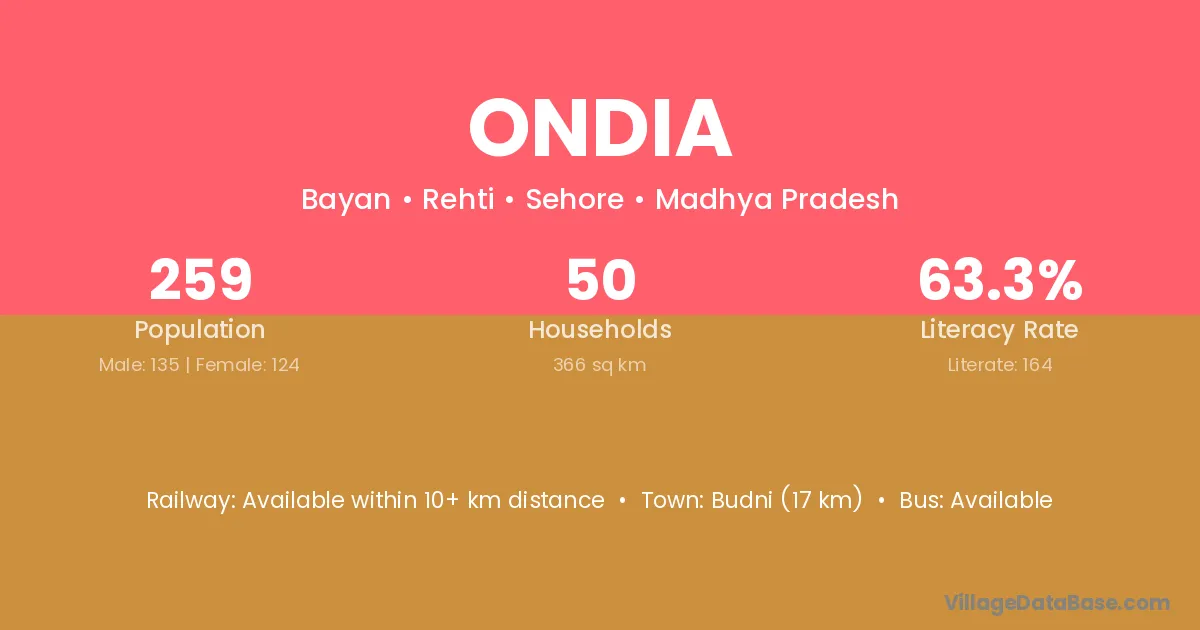 Ondia village is located in the Rehti Tehsil of the Sehore district in Madhya Pradesh .