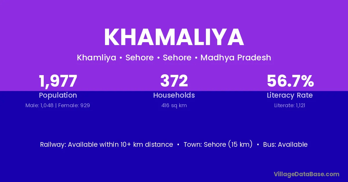 Sehore (15 km) is the nearest town to Khamaliya village for major economic activities and is located approximately 15 km away.