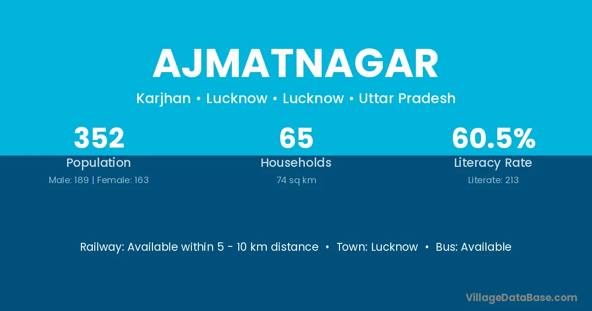 The literacy rate of Ajmatnagar village is 36.23%. Male literacy stands at 47.67% and female literacy at 23.16%.
