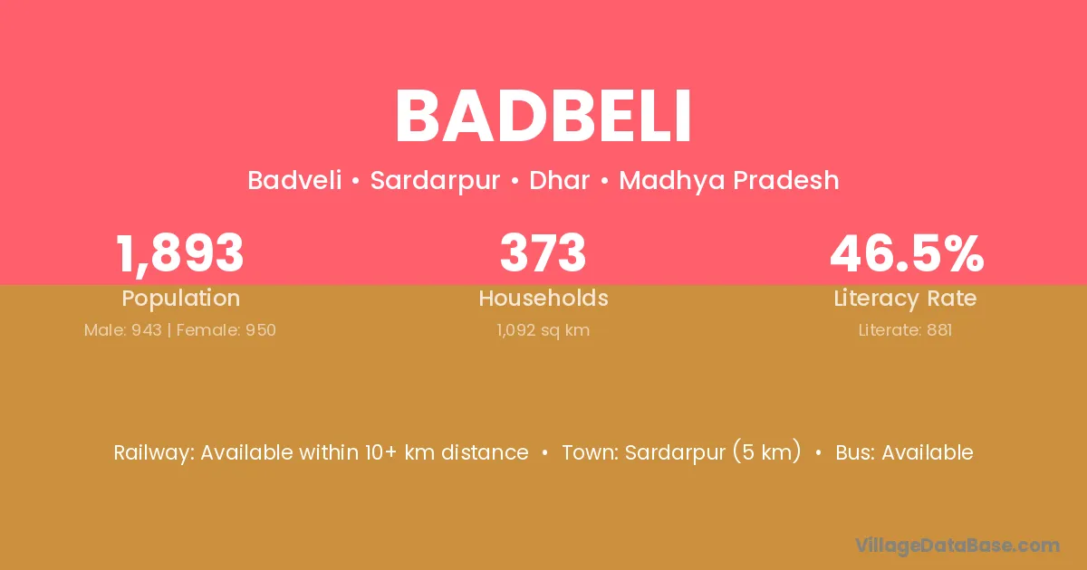 Sehore (18 km) is the nearest town to Badbeli village for major economic activities and is located approximately 18 km away.