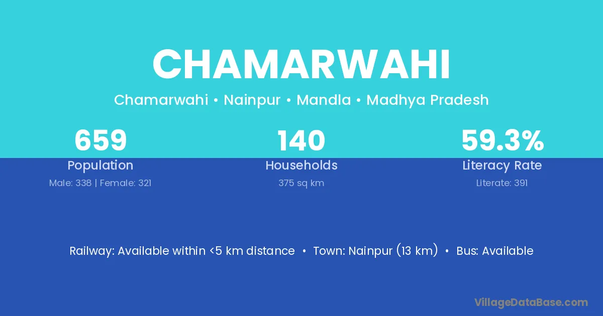 The literacy rate of Chamarwahi village is 56.29%. Male literacy stands at 66.56% and female literacy at 46.73%.