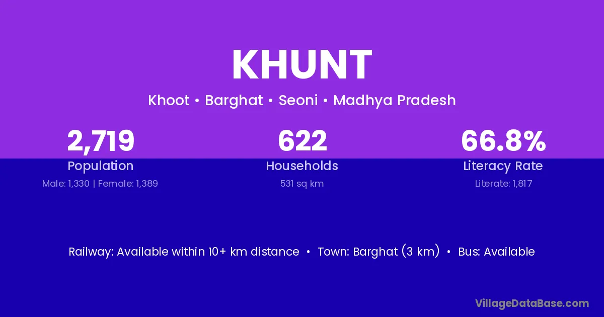 Barghat (3 km) is the nearest town to Khunt village for major economic activities and is located approximately 3 km away.