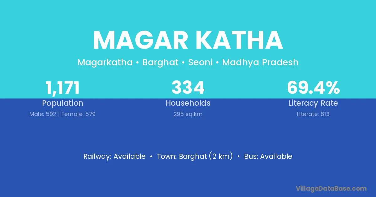 Magar Katha village has a total population of 1,171 people, of which 592 are males and 579 are females.