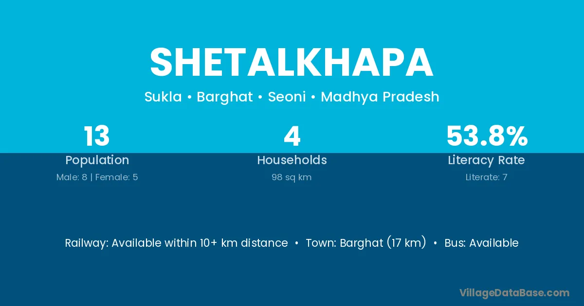 Shetalkhapa village has a total population of 13 people, of which 8 are males and 5 are females.