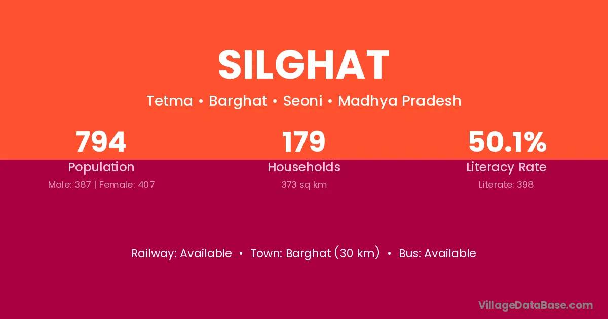 Barghat (30 km) is the nearest town to Silghat village for major economic activities and is located approximately 30 km away.