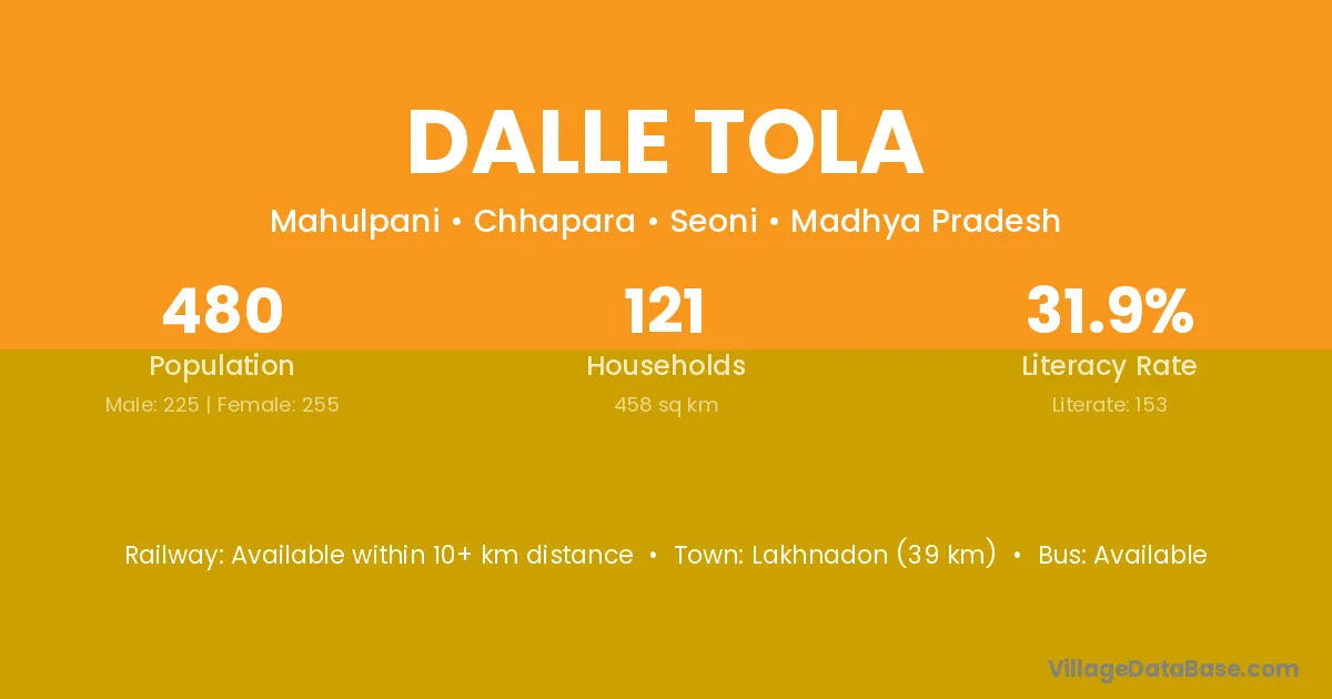 Lakhnadon (39 km) is the nearest town to Dalle Tola village for major economic activities and is located approximately 39 km away.