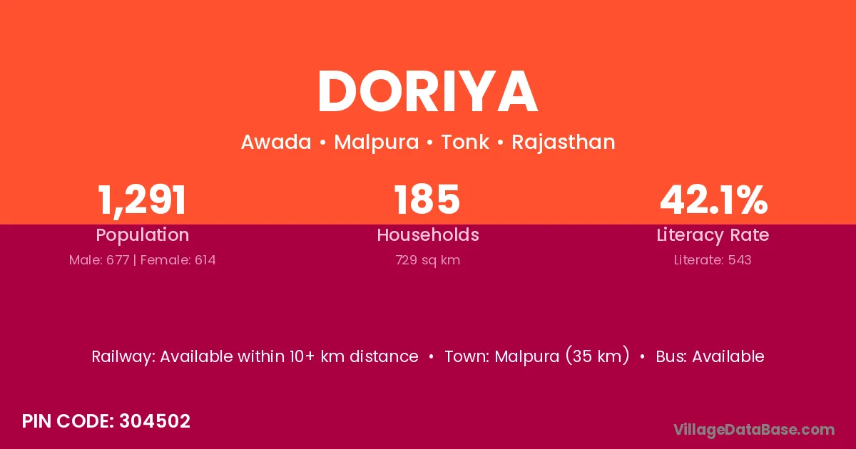 Lakhnadon (35 km) is the nearest town to Doriya village for major economic activities and is located approximately 35 km away.