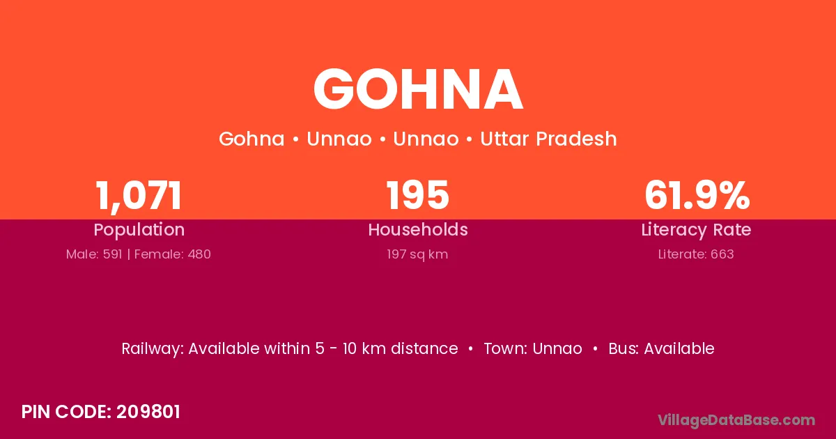 Gohna village has a total population of 307 people, of which 155 are males and 152 are females.