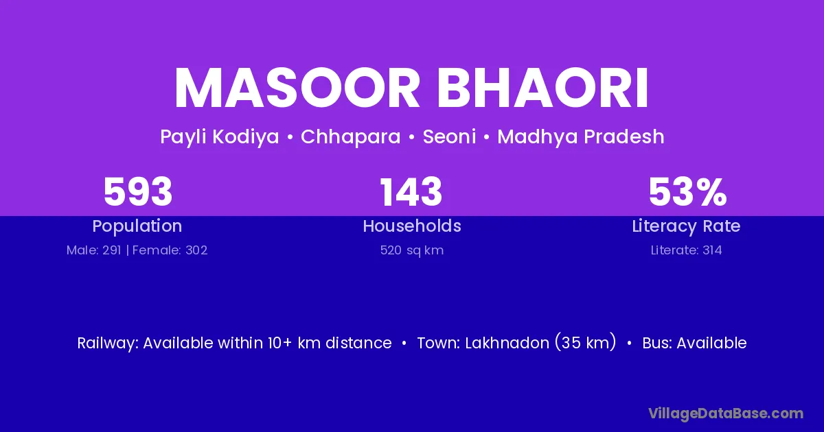 Lakhnadon (35 km) is the nearest town to Masoor Bhaori village for major economic activities and is located approximately 35 km away.