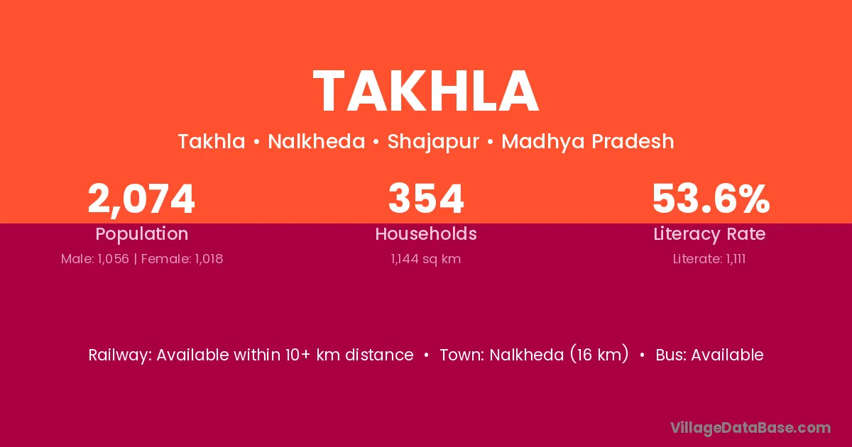 Seoni (65 km) is the nearest town to Takhla village for major economic activities and is located approximately 65 km away.